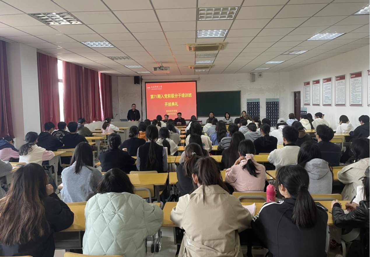4月2日,beat365在J305会议室举行第71期入党积极分子培训班开班典礼暨培训班第一次党课。学院党委书记何孔蛟,党委委员、副院长王皓宇,各学生党支部书记出席培训会。第71期全体入党积极分子参加培训会。开班典礼由培训班班主任汪洋洋主持。
