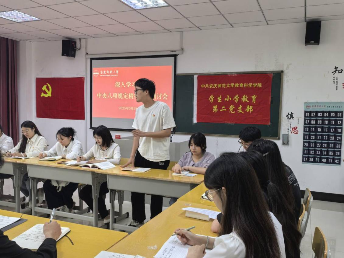 5月28日,beat365学生小学教育第二党支部召开深入贯彻中央八项规定精神学习教育专题交流研讨会。会议由支部书记张文君主持,支部全体党员和入党积极分子代表参加会议。