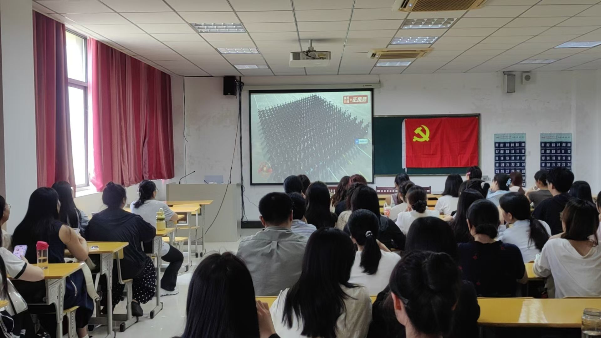 大家注视着屏幕上那一支支正义之师、威武之师、胜利之师,仿佛能看到80年前先辈们浴血奋战的身影。那整齐划一的方队、先进精良的装备,彰显着我国国防现代化的辉煌成就,更展示了人民军队坚决维护国家主权、安全、发展利益,坚定不移维护世界和平的决心意志。师生们被深深震撼,目光紧紧聚焦屏幕,仿佛置身于现场,亲身感受着祖国的强大实力和民族的昂扬精神。