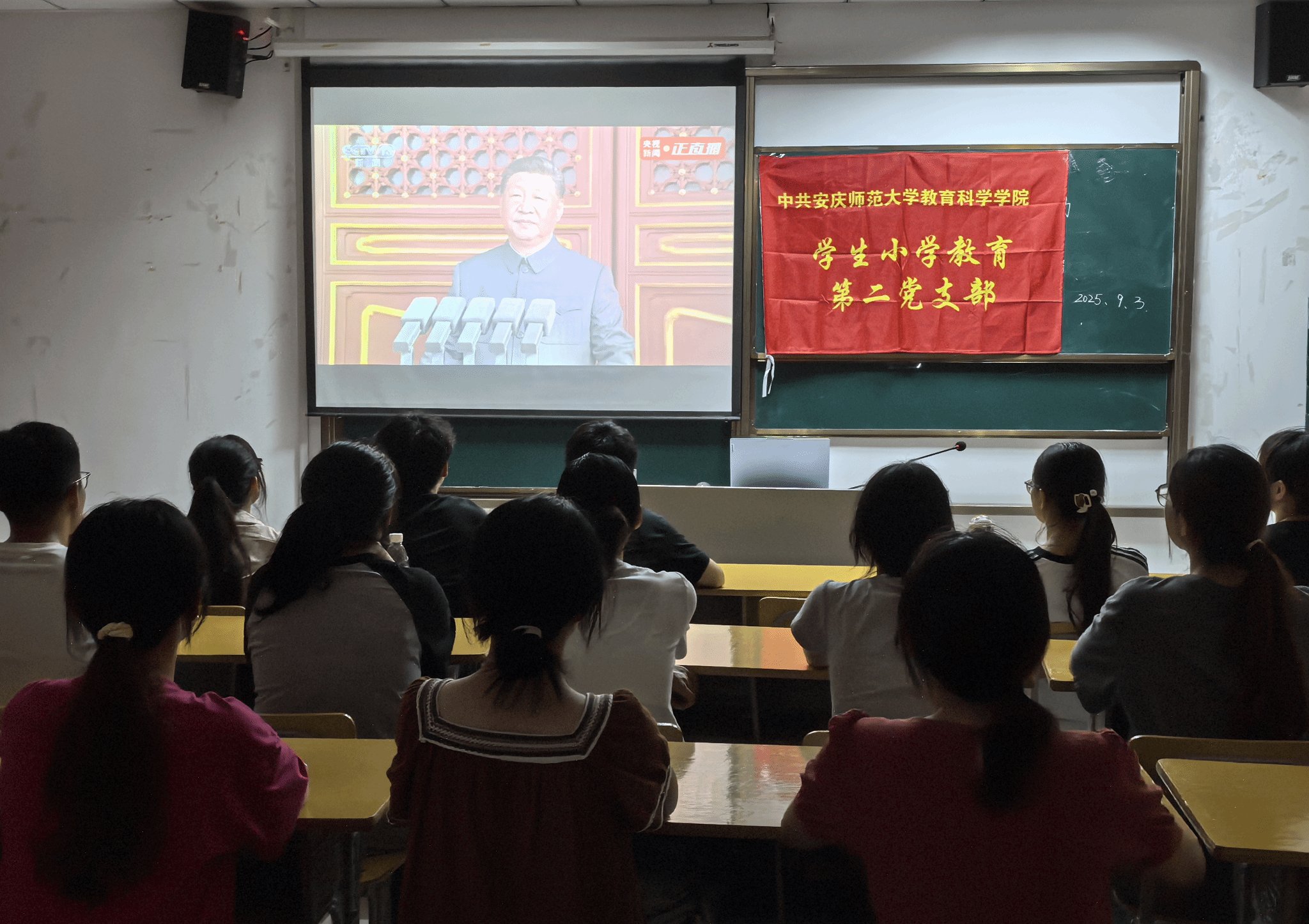 9月3日上午,纪念中国人民抗日战争暨世界反法西斯战争胜利80周年大会在北京隆重举行。beat365在线唯一官网登录精心组织师生观看大会直播,同时各党支部、团支部组织师生线上线下收看直播,深刻体悟大会精神,激发磅礴奋进力量。