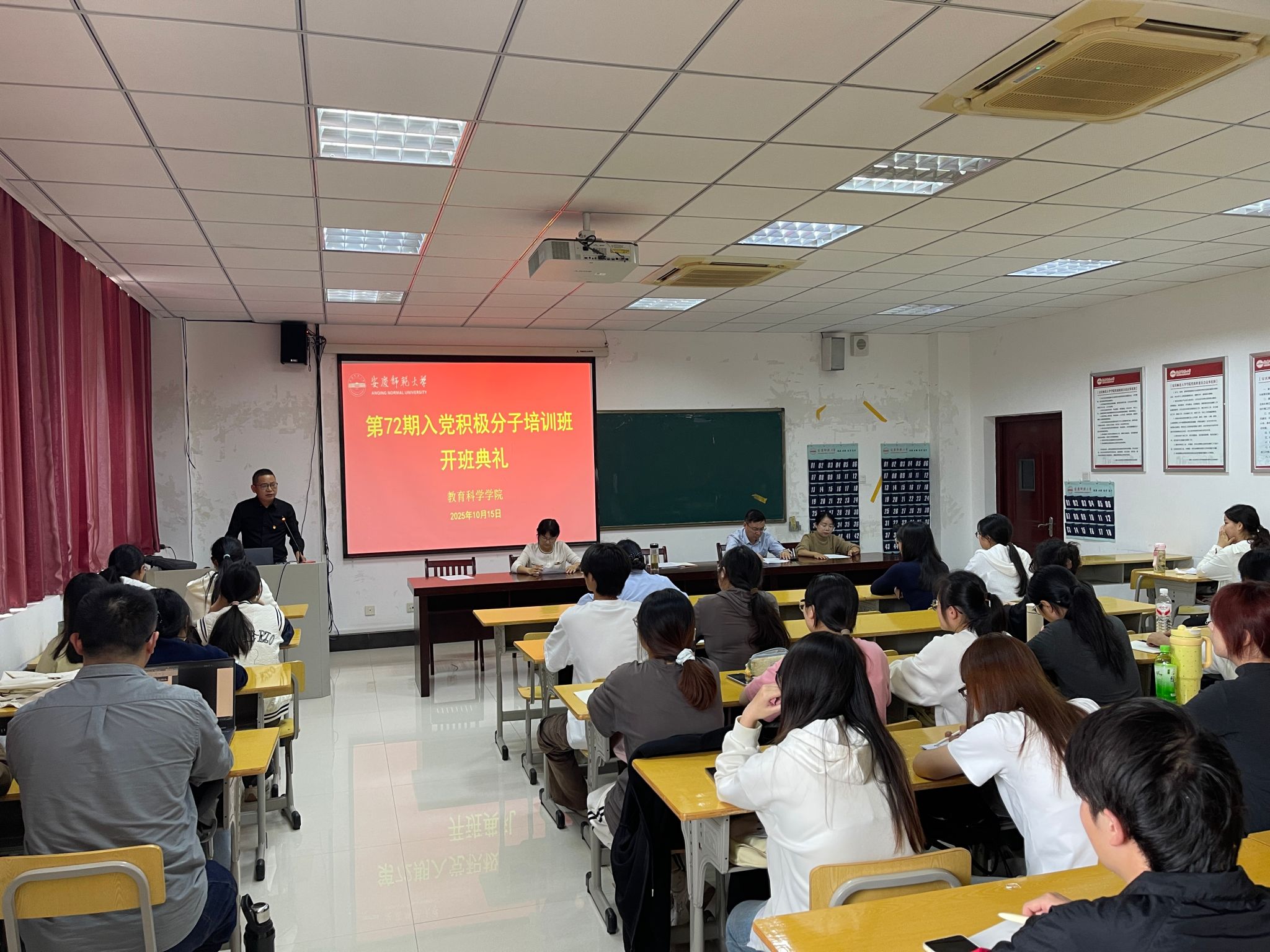 10月15日,beat365在J305教室举行第72期入党积极分子培训班开班典礼暨第一次专题党课。学院党委书记何孔蛟,党委副书记许世平,各学生党支部书记出席培训会。第72期全体入党积极分子参加会议。开班典礼由党委秘书汪洋洋主持。