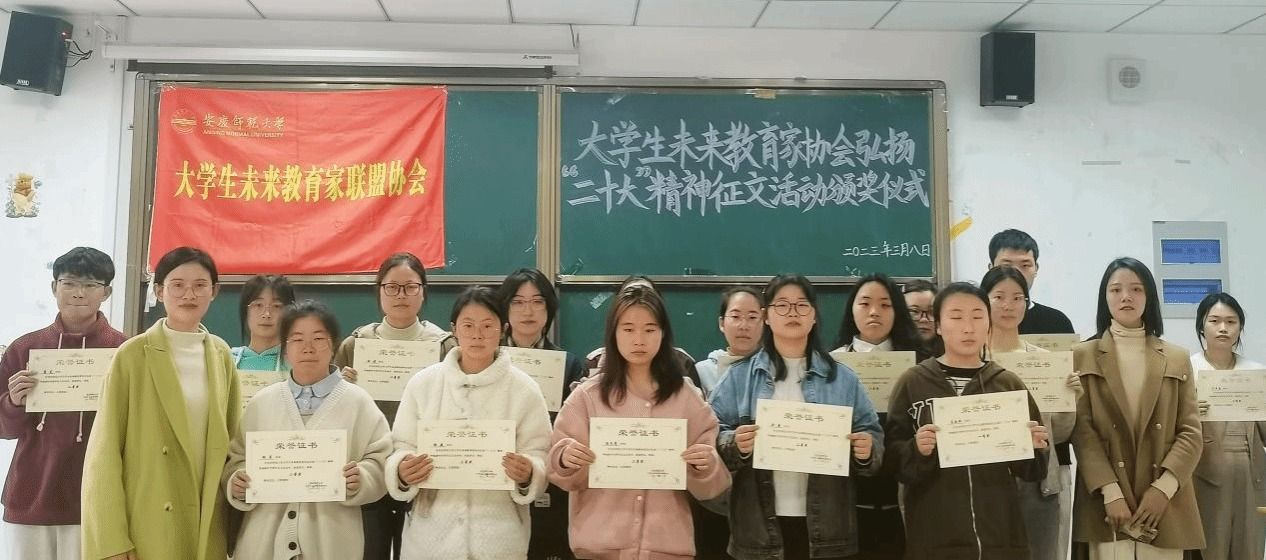 3月8日中午12时,由“大学生未来教育家协会”举办的“小小的我与大时代”主题线上征文比赛颁奖仪式在beat365212教室举行,全校各院70余名学生到会观摩领奖,会议由社团指导老师姚强诚主持。