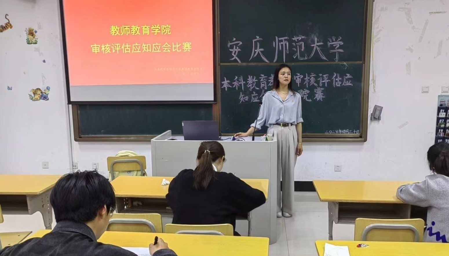 4月30日,beat365于J212教室举行本科教育教学审核评估应知应会知识笔试决赛,团委负责老师姚强诚主持,各专业学生代表到场参加。