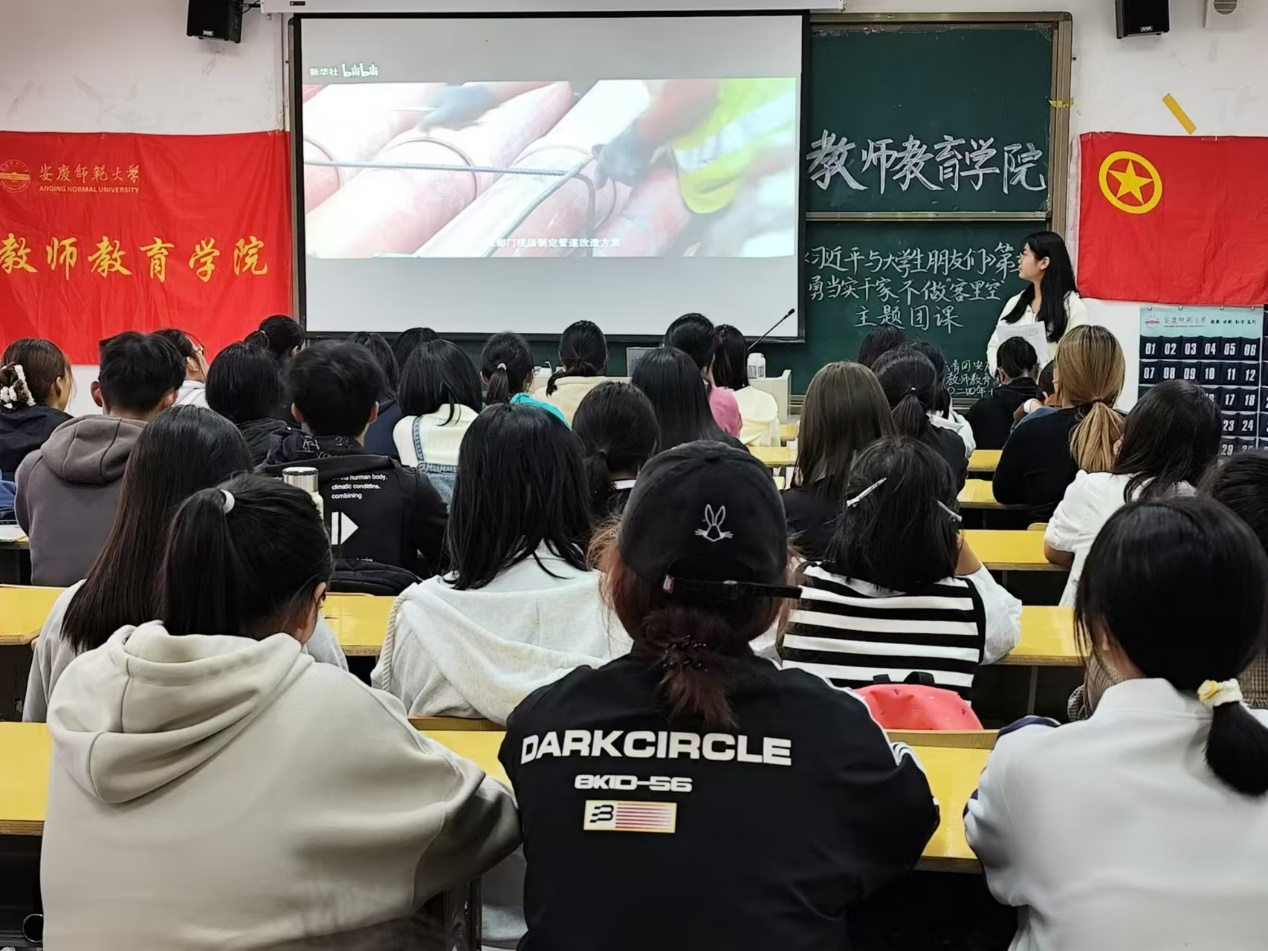 10月16日,学院团委于J214教室开展“《习近平与大学生朋友们》第二卷第一课——勇当实干家,不做‘客里空’”主题团课。本次活动由院团委实践委员郭柳森主持,学院全体团员积极参加。