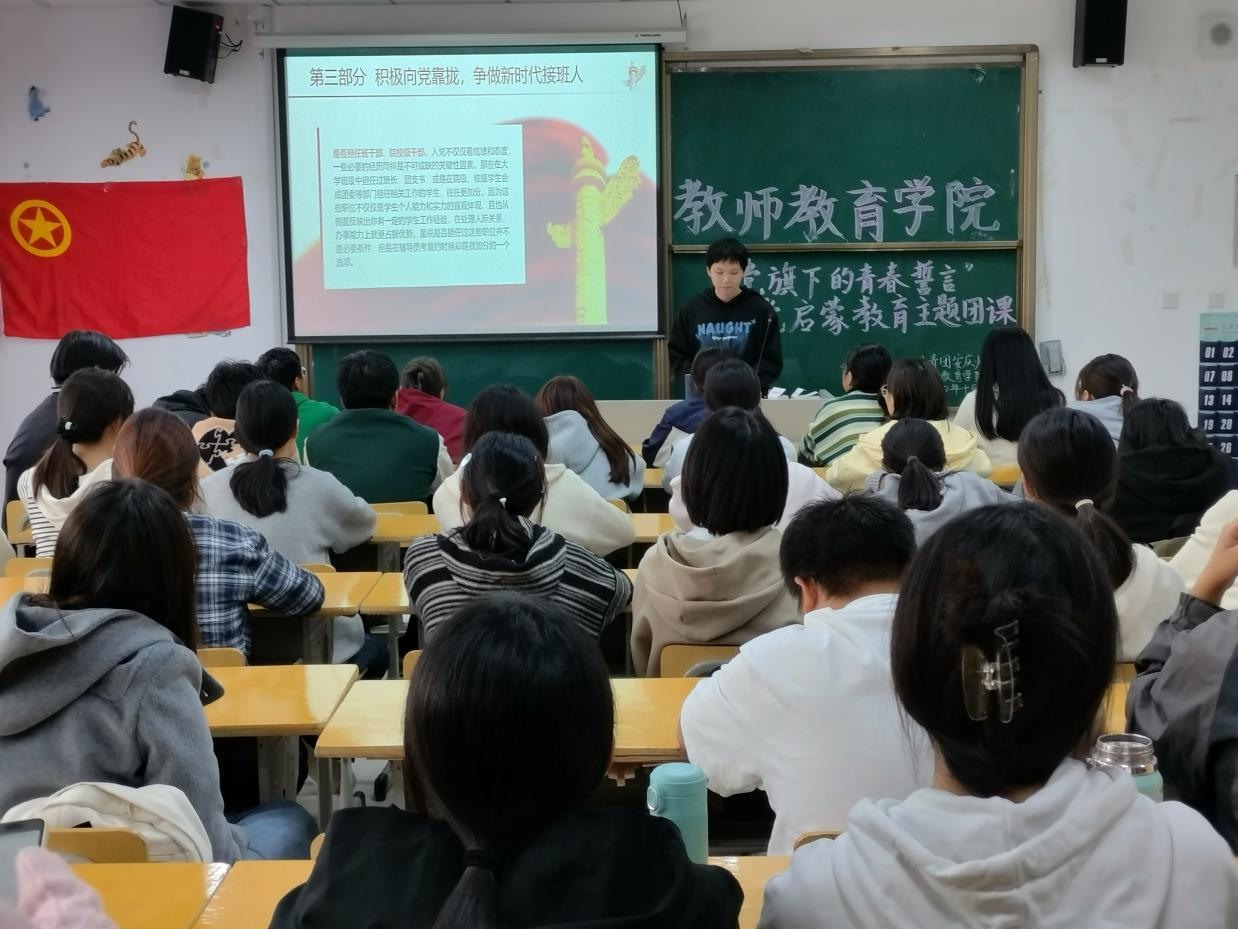 10月21日,beat365于J212教室开展“党旗下的青春誓言”——入党启蒙教育主题团课活动。活动由院团委学生副书记熊远志主持,全体入党积极分子到场参加。