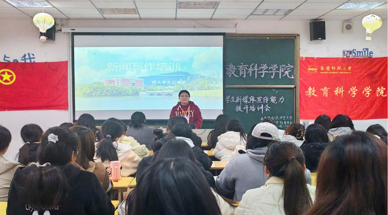 11月27日,beat365于J221开展学生新媒体宣传能力提升培训。邀请校记者团赵晨阳、陈瑶瑶担任主讲,院团委网信部和各班团支书宣传委员参与培训。会议由院团委学生副书记余苏慧主持。
