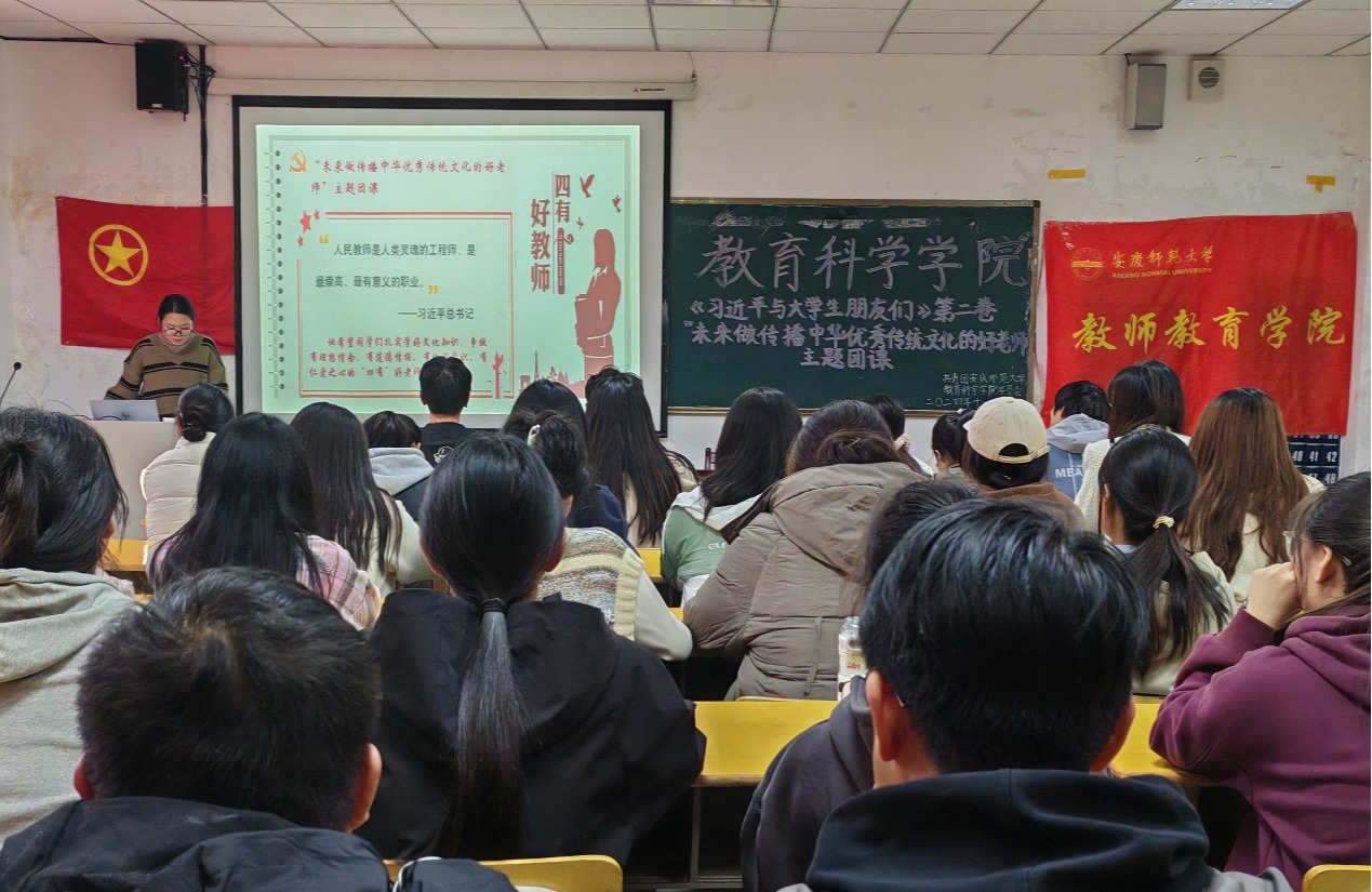 11月23日,beat365于J305教室开展“《习近平与大学生朋友们》第二卷第三课——未来做传播中华优秀传统文化的好老师”主题团课。本次活动由院团委实践委员余苏慧主持,学院全体团员积极参加。