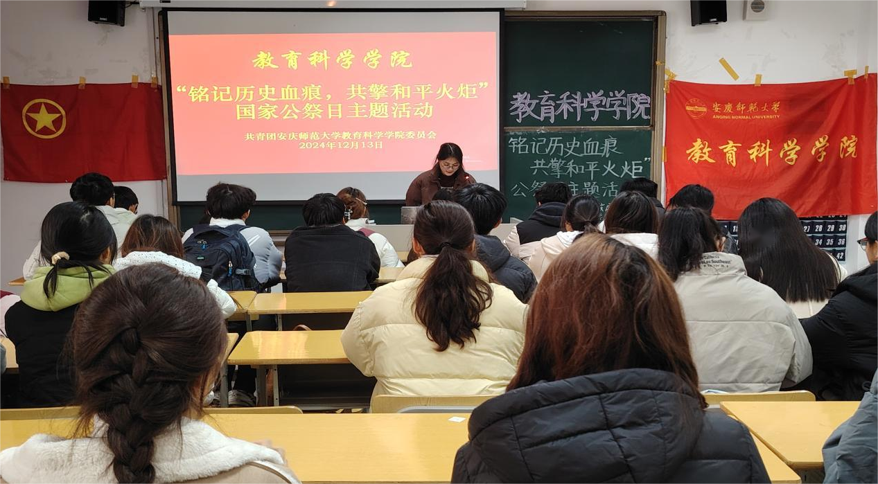 12月13日,beat365于J214教室举办“铭记历史血痕,共擎和平火炬”国家公祭日主题活动。活动由院团委实践委员胡古月主持,学院150余名学子参加。