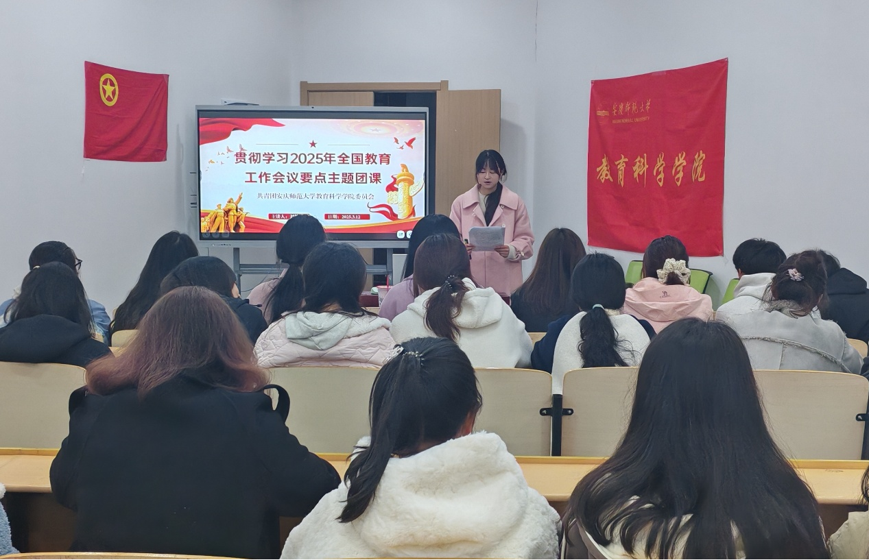 3月12日,beat365于一站式学生社区阶梯教室2-4展开“贯彻学习2025年全国教育工作要点”主题团课。本次活动由团委实践委员刘筱羽担任主讲,beat365学子积极参加。