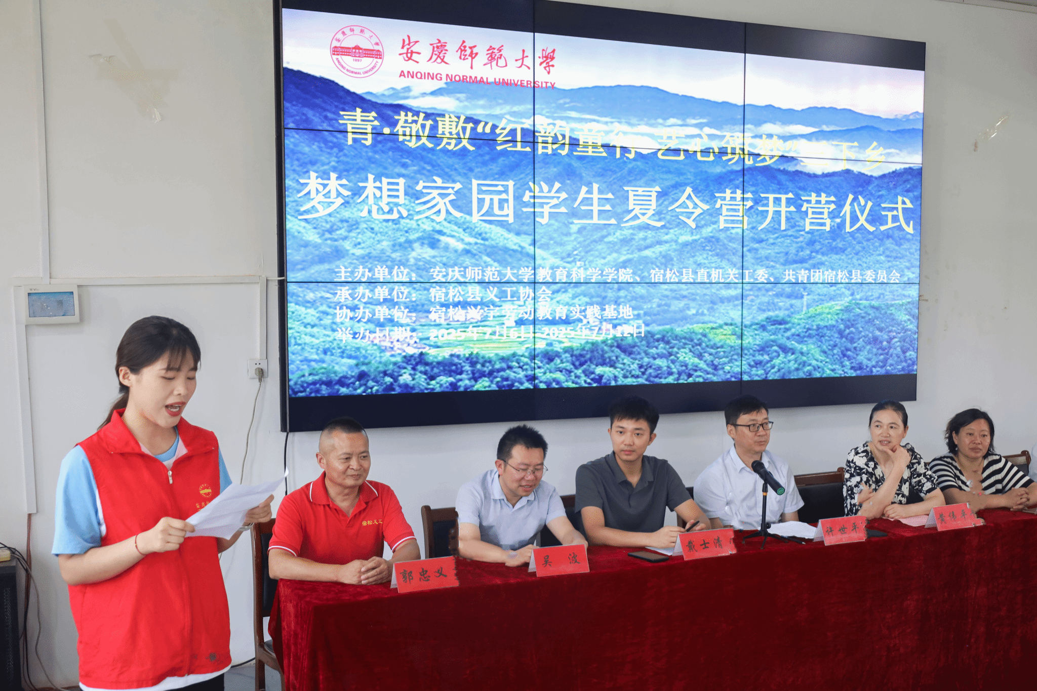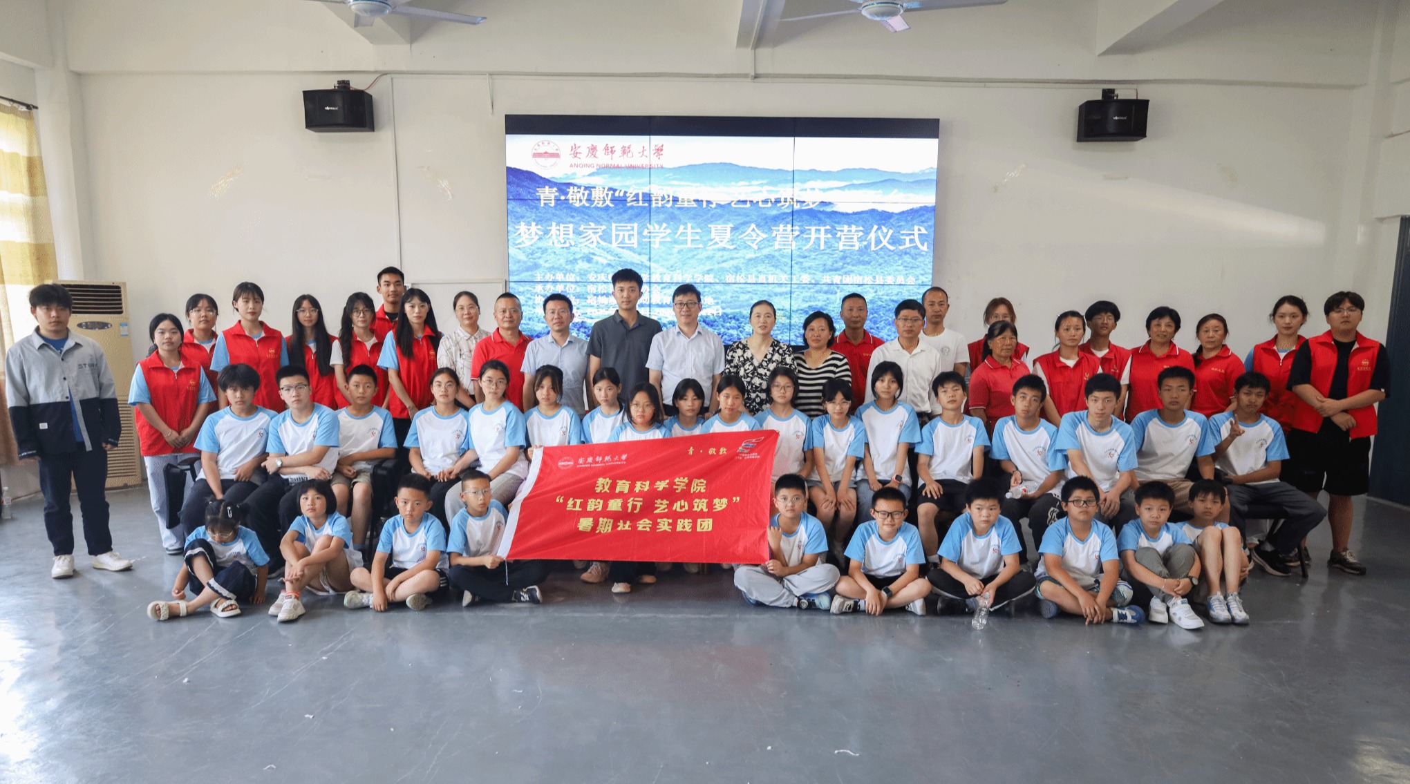 7月6日上午,2025年“红韵童行,艺心筑梦”暑期三下乡暨“梦想家园”夏令营开营仪式在安庆市宿松县兴宇劳动教育综合实践基地举行,安庆师范大学beat365在线唯一官网登录党委副书记、纪委书记许世平,宿松县委组织部副部长黄伟平,团县委书记戴士清,县华亭镇党委委员邓顶峰、县直机关工委科负责人吴波、实验中学党支部副书记吴金旺、县义工协会会长郭忠义出席开营仪式,实践团队、受助学生、义工协会会员等参加开营仪式。