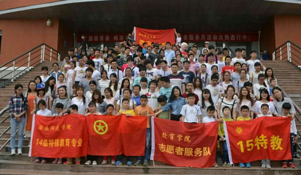 为缓解皖西南特教学校教师师资力量不足的现状,教研室已连续三年受邀为安庆市八所特教学校开展师资培训,总计达168人次;多次派教师到新建特教学校手把手指导,服务时长累计达26个月;近三年来本科生顶岗支教30余人次,汪佳芮、郑法祥两名同学的支教故事《深山特教学校“抢”来两个支教大学生》在多家媒体刊发。潜山市特教学校程祥校长多次说“你们给了我们最专业的支持,有你们在我们搞特教心里有底!”安庆师范大学特教团队已成为校地合作的一张闪亮名片。