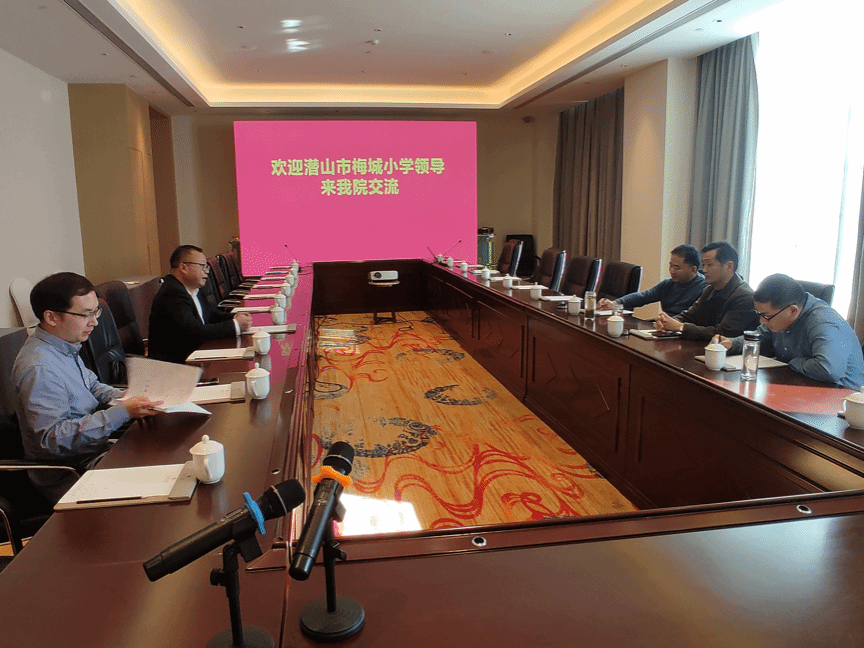 12月9日下午,潜山市梅城小学校长周葛林一行来beat365交流。执行院长吴云助主持交流会,beat365部分教师参加。