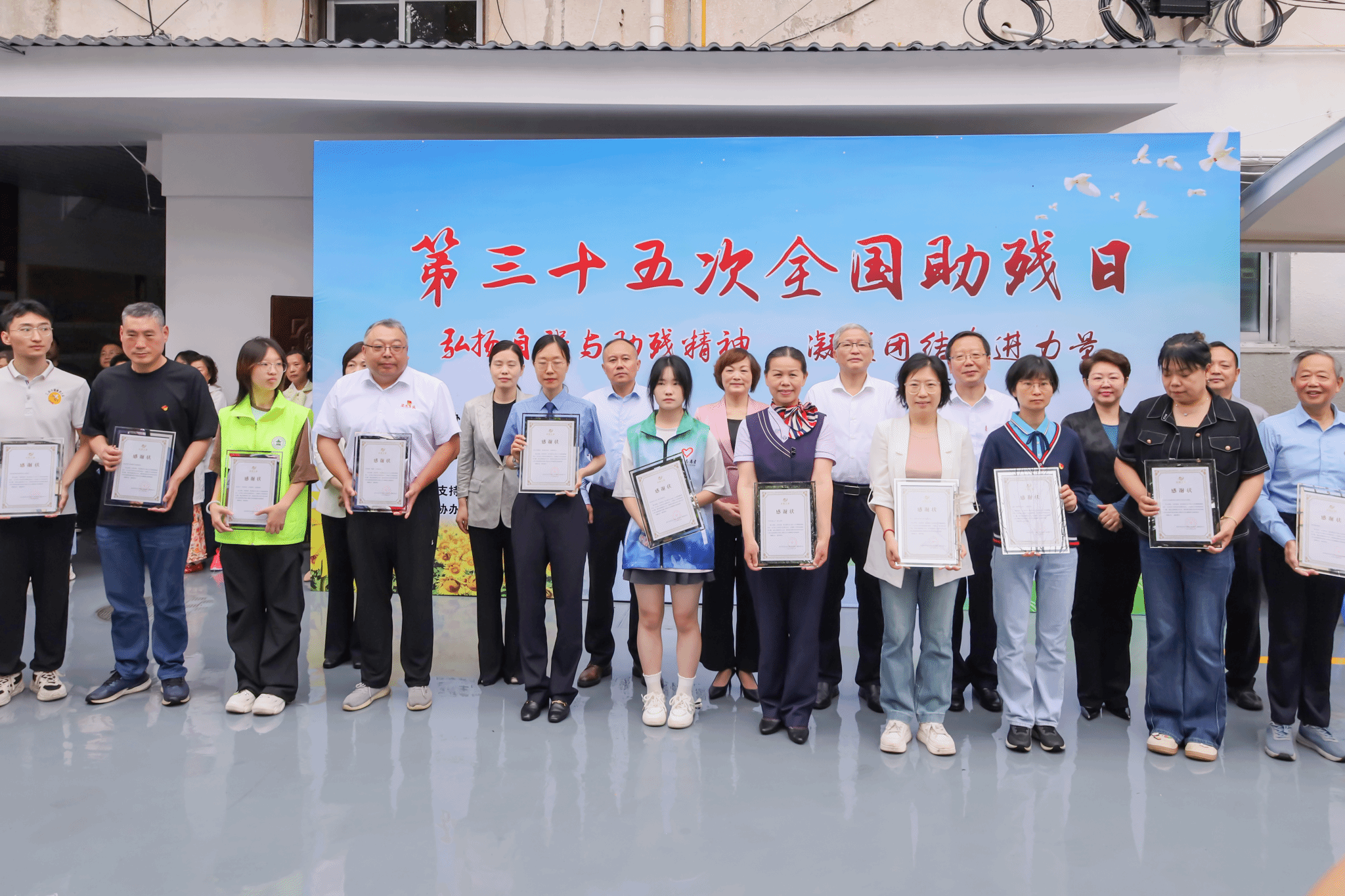 在第35次全国助残日来临之际,5月16日,beat365在线唯一官网登录携手沐阳之家残疾儿童康复中心(以下简称“沐阳之家”)举办以“弘扬自强与助残精神,凝聚团结奋进力量”为主题的公益活动。安庆市人大、市政协、市发改委、迎江区、市残联、团市委等有关市、区领导及爱心单位、爱心人士和志愿者、沐阳之家师生代表200余人参加活动。校工会主席杨永久、学院党委书记何孔蛟、教务处副处长林秋菊、特殊教育教研室党支部书记郭启华和学生代表参加活动。