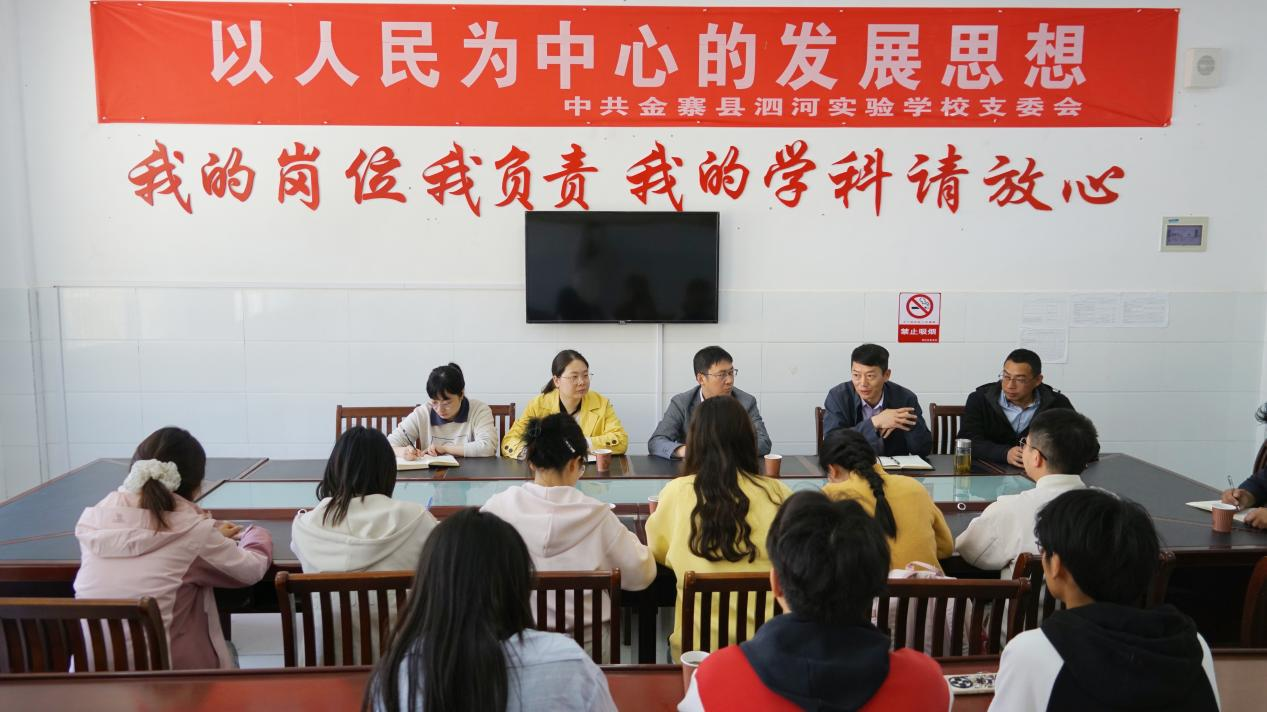 活动的最后一站是在泗河实验学校开展调研交流。座谈会上,石义银校长介绍了泗河实验学校“饮水思源,扬帆追梦”的办学特色,强调学校注重将红色文化纳入学生的日常学习中,如举办红歌比赛,策划红色板报,建设地方红色课程等,坚持红色实践与日常教学相结合。学院党委副书记、纪委书记许世平介绍了学校“红色园丁”的培养体系,介绍了学院“红色铸魂”活动的安排。双方就畅通学生实习、调研渠道、传播红色文化等进行了深入的交流。