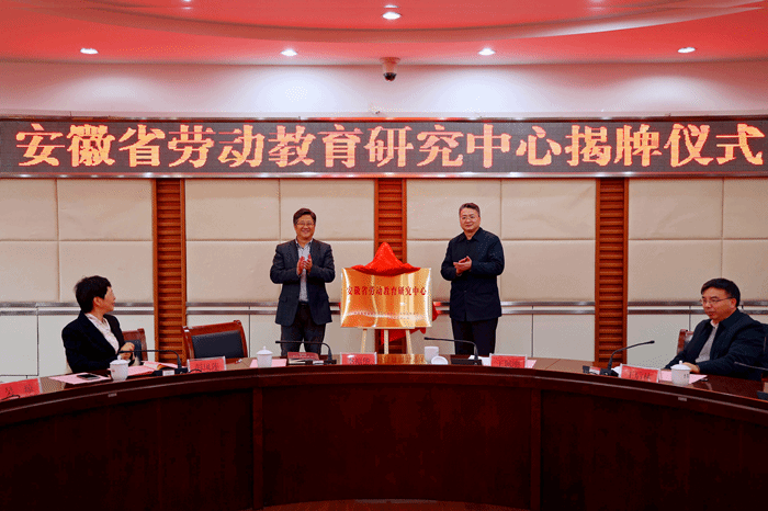 1月16日,安徽省劳动教育研究中心揭牌仪式在我校举行。省委教育工委、省教育厅一级巡视员王佩刚,校党委书记李福华共同为中心揭牌。